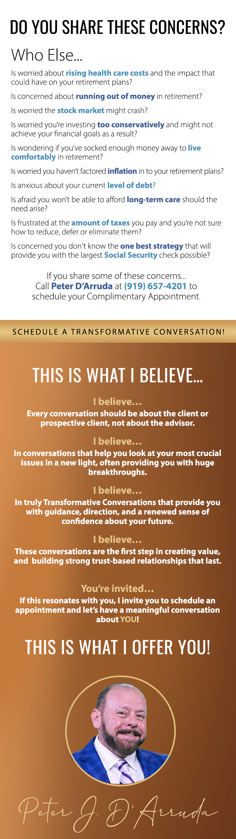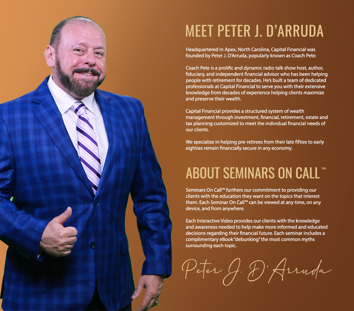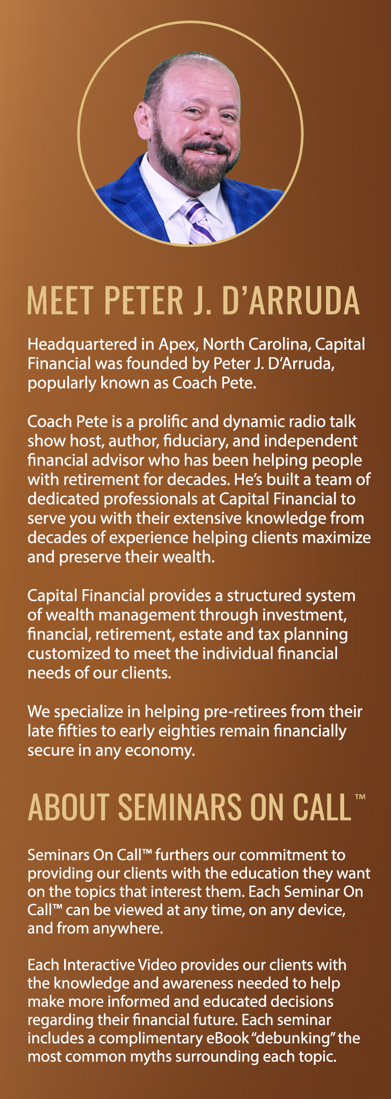 Capital Financial & Insurance is an independent financial services fiduciary firm helping individuals create retirement strategies using a variety of investment and insurance products to suit their needs and objectives. Investment Advisory Services offered through Capital Financial Advisory Group, LLC, a Registered Investment Adviser. This website is for informational purposes only and does not constitute a complete description of our investment services or performance. This website is in no way a solicitation or offer to sell securities or investment advisory services except, where applicable, in states where we are registered or where an exemption or exclusion from such registration exists. Information throughout this site is obtained from sources which we and our suppliers believe reliable, but we do not guarantee the timeliness or accuracy of this information. Nothing on this website should be interpreted to state or imply that past results are an indication of future performance.